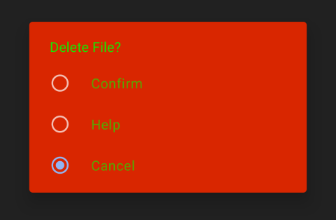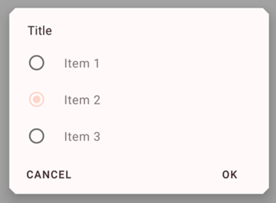 To style the items of a dialog box with radio buttons you can use the following example