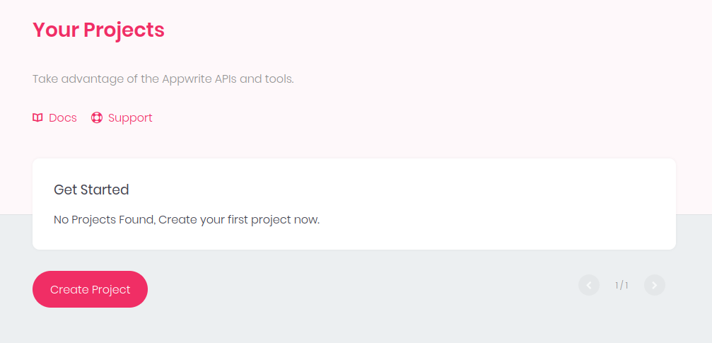 When the docker image is running you can open the URL in your browser and will see the first Appwrite screen: