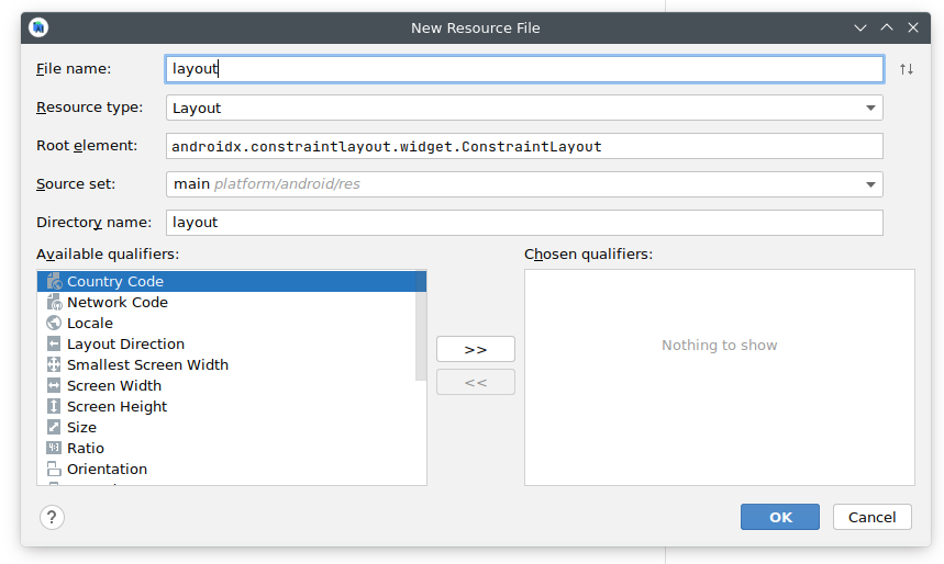 }we remove all the code from the constructor and start to get our XML layout: