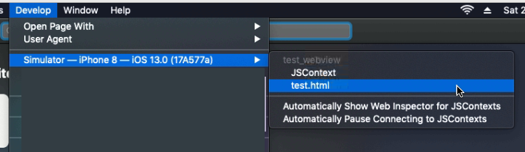 After that you will see all your devices and simulators inside the new “Develop” menu: