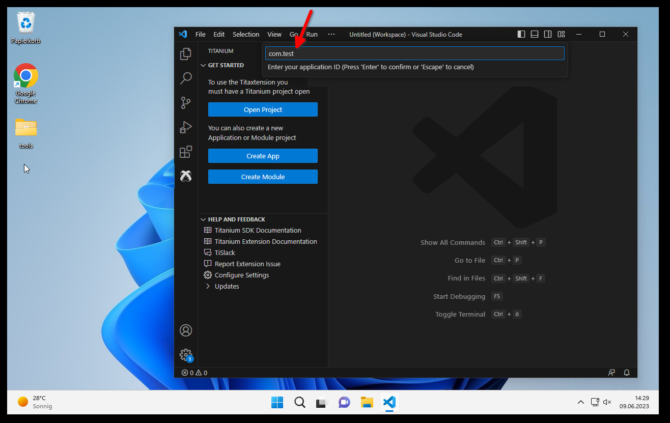 Dafür installieren wir noch Visual Studio Code (VS Code), da es dort ein eigenes Titanium Paket gitb. Mit diesem können wir z.B. Autovervollständigung nutzen.